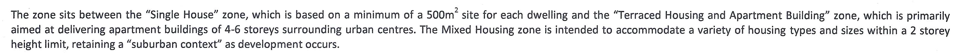 While “Two Storey” is mentioned, the word “intended” is also used as well. ‘The Mixed Housing Zone is INTENDED to accommodate…” Not WILL ACCOMMODATE but, INTENDED TO ACCOMMODATE. Big change in the meaning of the sentence with one little word.