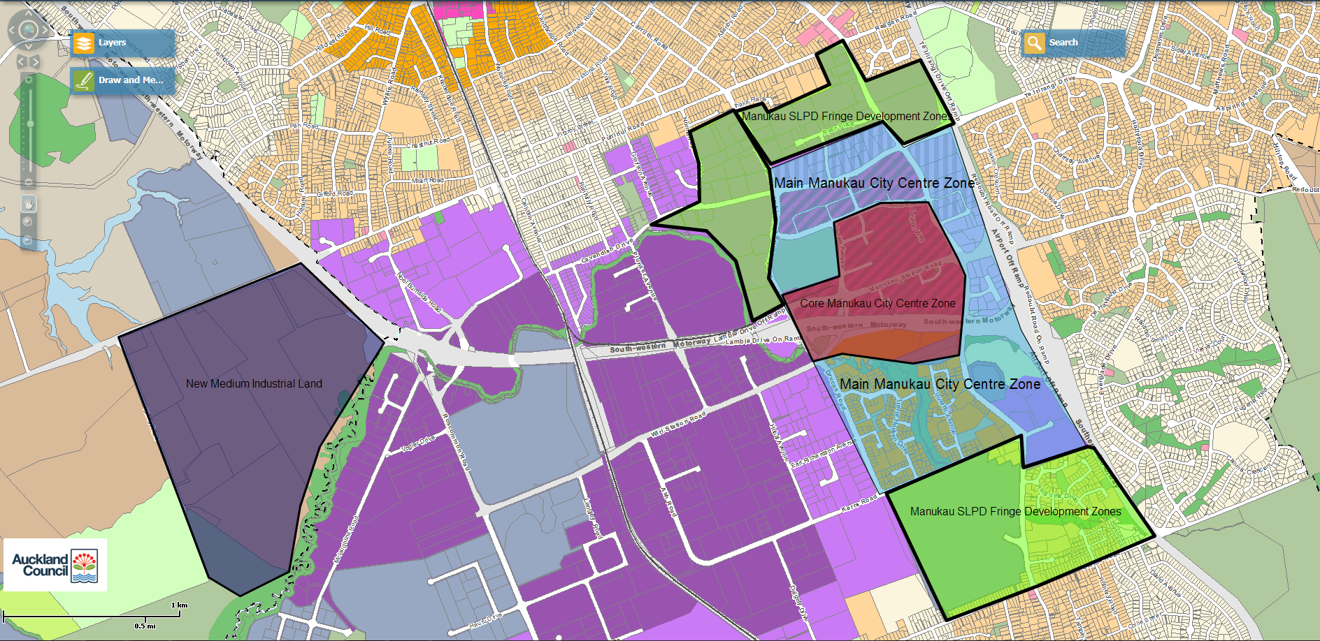 Like the City Centre; to improve the vibe of the Super Metropolitan Centre environment, the zone permits a wide range of activities to establish in most parts of the SMC. The zone also manages activities that have the potential to adversely affect the amenity of the Super Metropolitan Centre. The Unitary Plan enables the greatest level of development in terms of height and floor area to occur in the Super Metropolitan Centre as well as the City Centre. Within the Super Metropolitan Centre itself, development potential is concentrated in the core central business district. Development potential reduces towards the ridgeline (Redoubt Hill) and transitions to lower heights towards its northern flanks (bordering Papatoetoe), southern flanks (Manurewa/Browns Road) and western flanks (Wiri industry and Auckland International Airport).