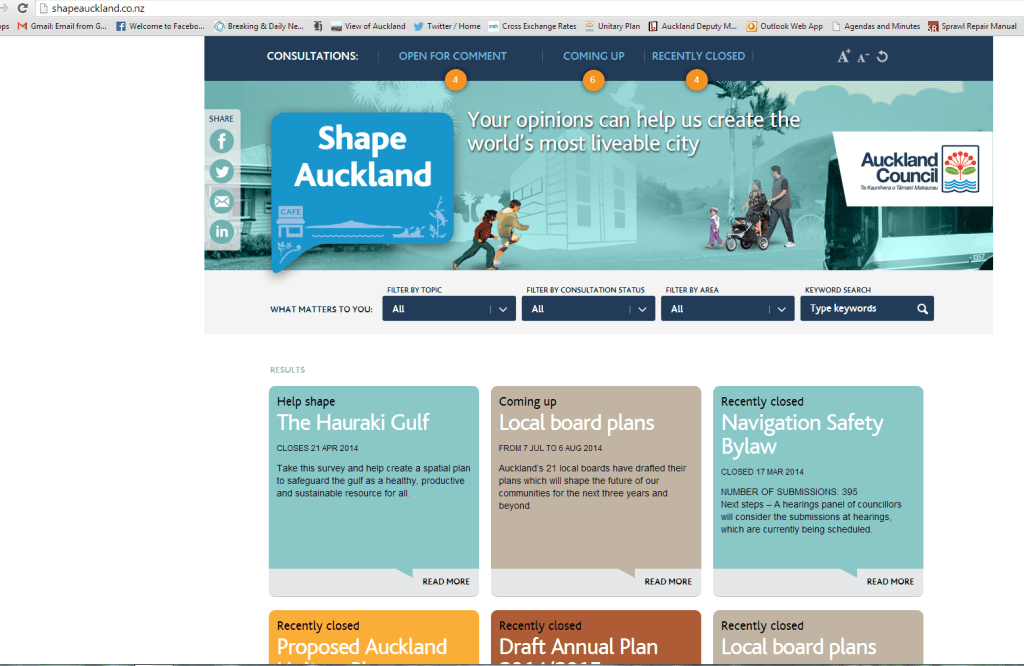 Keeping pace with digital interactions The Shape Auckland website (which was the main portal to the Unitary Plan) has gone through an “upgrade” roping in all consultations, feedback rounds, and … Continue reading Shape Auckland gets an Upgrade