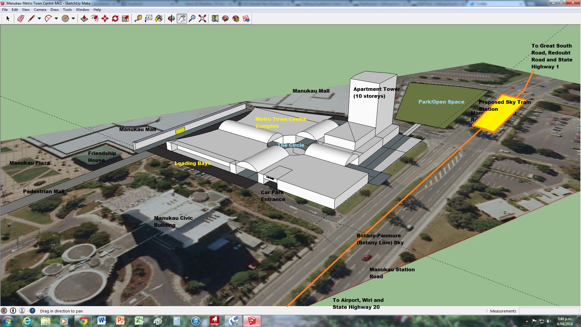 Today I was playing around with the Manukau Metro Town Centre (located on the current surface car at the south end of the Westfield Manukau Mall (opposite the Courts on Manukau Station Road) as well as laying down the foundation to the “park” next door (over the top of another surface car park)