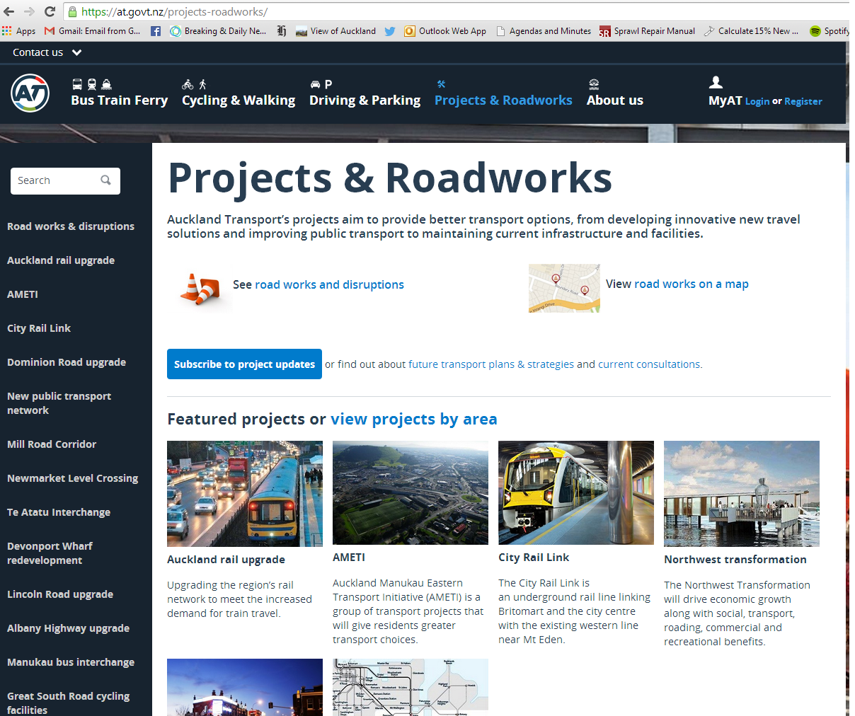 Auckland Transport have an easy to follow Projects and Road-works page on their website where you can keep yourself up to date on the latest happenings either in your area or Auckland wide. You can even subscribe to get updates from Auckland Transport sent to your inbox.