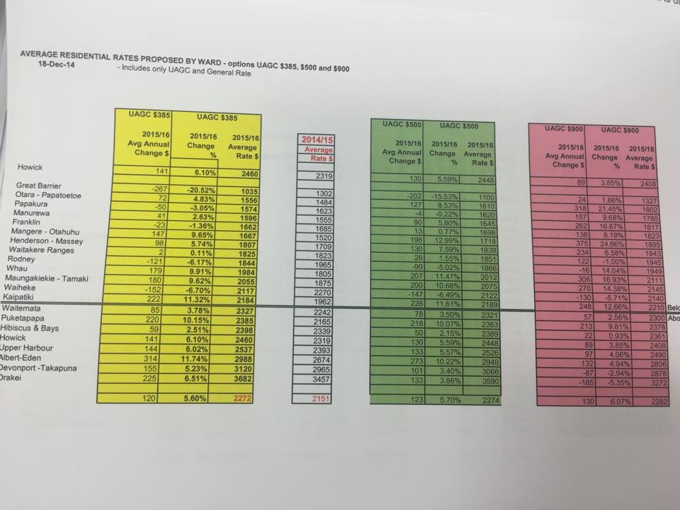 In short South Auckland would be severely hurt under a $900 Uniform Annual General Charge while Orakei would get rates decreases. Under the $385 charge Orakei would get a 6.51% while South ranges from -3.65% to a 9% rise. This all changes under a $500 UAGC which if need be does balance as does the $385.