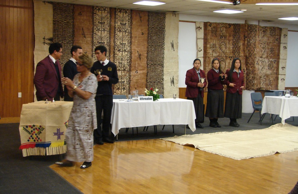 De La Salle College, Mangere College, McAuley High School and Aorere College will debate in Sāmoan `O mala fa`alenatura o fa`ailo o le to`asa o le Atua ia Sāmoa’ (Natural disasters are a warning of God’s wrath on Sāmoa) and `Ua tatou pologa i le fa`aSāmoa, e le ona o le aganu`u, ae ona o tagata.’ (We suffer in Fa`aSāmoa, not because of culture but because of people).