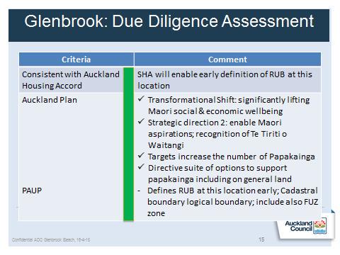 A response came through from Auckland Council in their reaction to the commentators’ reactions including mine. Council has forwarded two slides on why the Glenbrook SHA was brought into existence.
