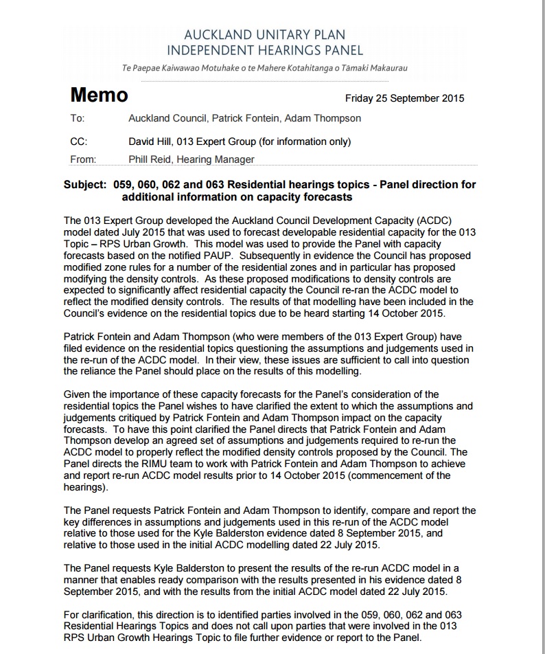 Unitary Plan Hearings Panel Directs Council to rerun and peer review Auckland Council Development Capacity 2015 Model AGAIN!