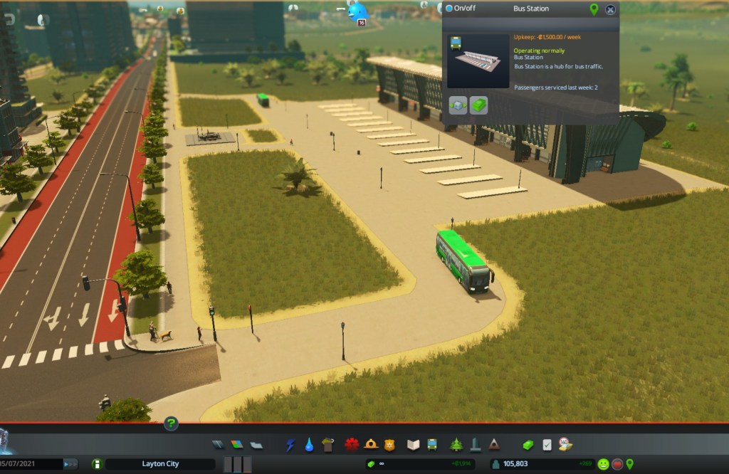 (Keep it simple) Bus Station. While this one is quiet with only a single route serving it, the stations can serve up to 8-10 routes allowing transfers between each one at the station.