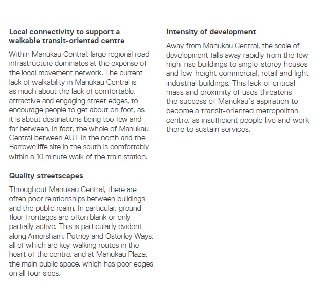 The wide range of transport connections to, around and through Manukau give the foundation for ‘Key Move Five,’ something other larger Metropolitan Centres would be envious of.
