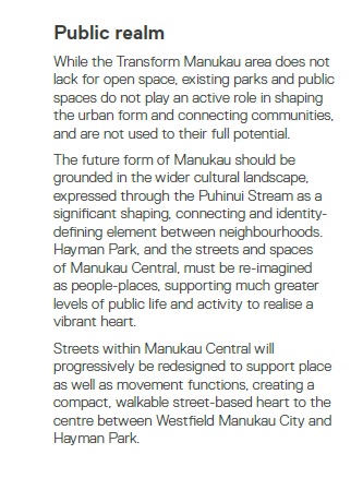 If we take a look at ‘Goal Two: Manukau’s form and the way the place touches the land’ both the history and what Panuku have outlined for Manukau give rise to the importance of ‘Key Move Five’ (and ‘Key Move Two’):