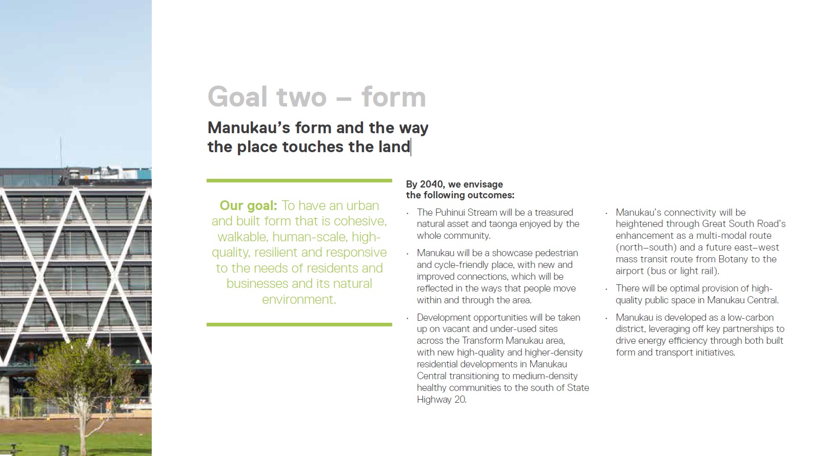 The Goal for Manukau with its built form and its enhanced community connectivity within itself and to wider Southern Auckland.