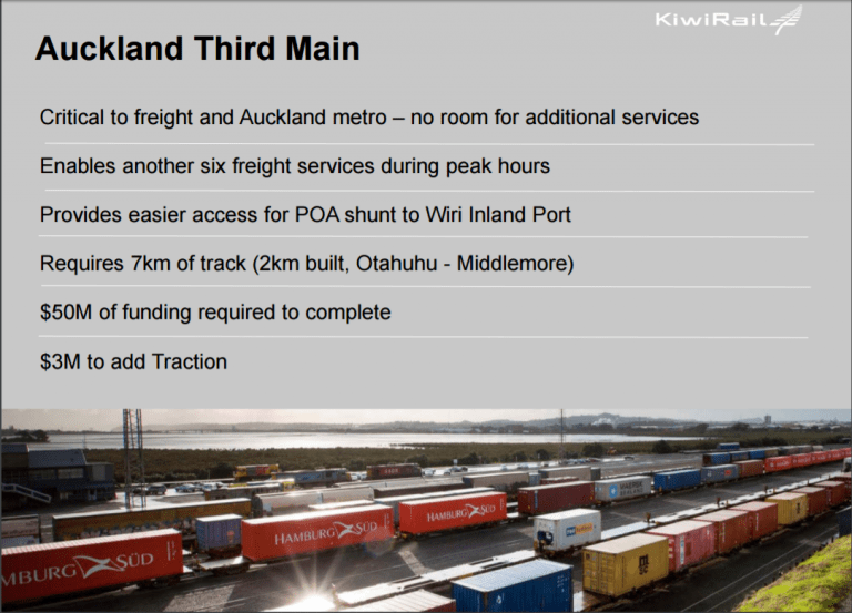 For now it would not make sense for Port of Auckland to shift their facility to Drury even though if they did it could mean the Manukau South Link would be built. Even if Metro Port went to Drury the Wiri facility would act as an intermediary hub supporting the Wiri industrial complex as well as Manukau. Given Wiri still has room to support more industry (and not under thread of a decamp) the Inland Port still has many years of growth in it. The Wiri Inland Port has also just gone major expansion to its facilities and is ramping up its shuttles between itself and Port of Auckland’s wharves so even with possible duplication with Metro Port Wiri will be with us for a while to come. But it does lead to an interesting dynamic of whether the Third Main would still be needed?