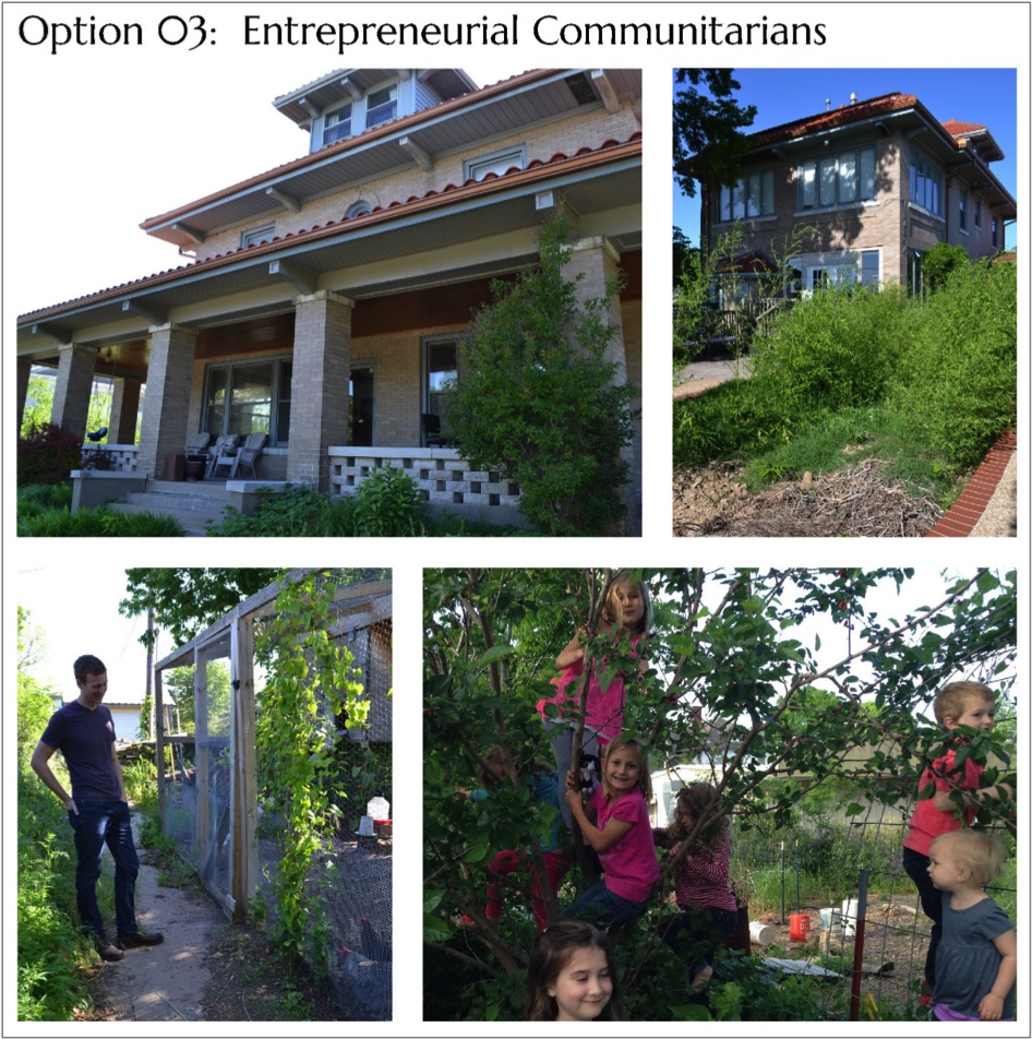 Finally, Option Three is the Entrepreneurial Communitarian model. This is similar to multi-generational living, but done with neighbors rather than family members. It is what our friends Nathan and Kristin (with their two kids) decided to do. They bought a large house in a less revitalized collar neighborhood – a neighborhood without a good public school and where crime was an issue. However, their house (for its size) was very inexpensive. To make things even more affordable and to improve neighborhood safety, they essentially converted their large home into a passive income generator and neighborhood community center. Living in a top-floor flat in their attic with their two kids, they rent out four other rooms and leave the ground floor as communal space not only for their renters but also for the neighborhood at large, hosting a variety of neighborhood gatherings there throughout the week. Moreover, they further reduced their operating costs by converting their yard into productive agriculture, complete with a chicken coop and beehives. They even went so far as to convert the existing in-ground pool in their backyard into a basin for growing edible bamboo (as seen in the top right photo above).