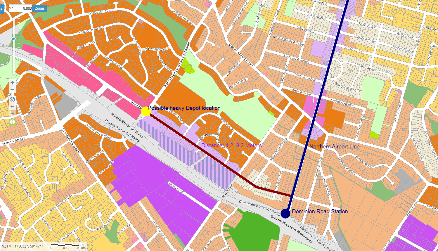 - On blank land zoned Light Industry alongside SH20B where Auckland Transport suggested for the bus depot if the Southern Airport Line is to be Bus Rapid Transit