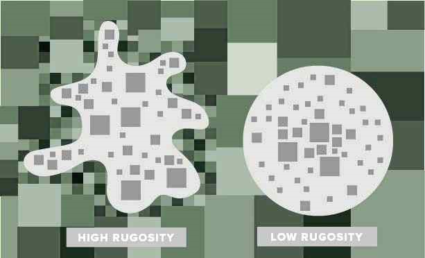 Traditional urban planning favors “concentric” layouts with a downtown core surrounded by suburbs and farmland (right). But Catherine Brinkley argues instead that cities should plan for “rugosity” (left) with more interfaces between functions.