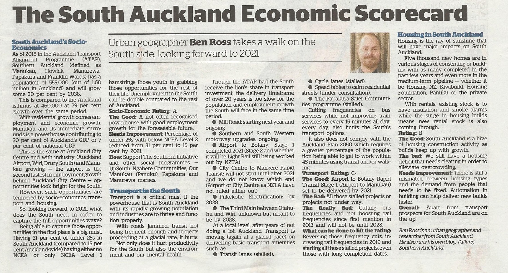Last Friday the NZ Herald ran their 28 page Project Auckland insert that looked at Auckland and its challenges through to 2021 and beyond. I had the privilege of penning a small column for Project Auckland on South Auckland’s score card.