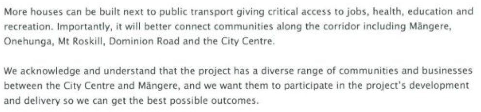 NZTA at least officially supports light rail, acknowledging it as an important project to increase social equity in Mangere and south Auckland:
