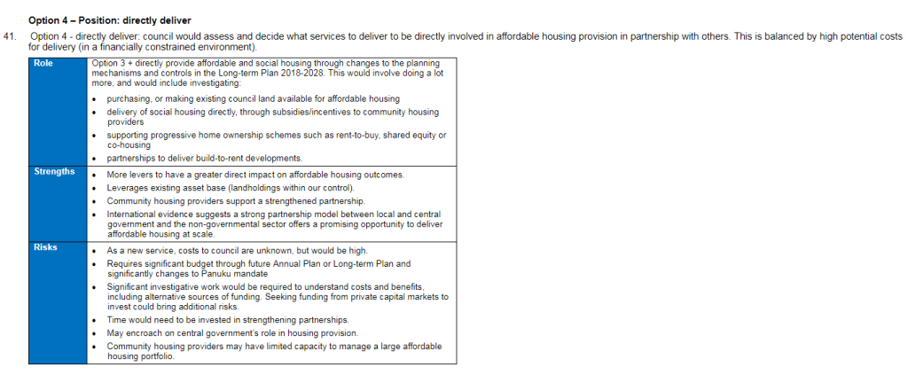 On Tuesday the Planning Committee were to make a decision on how to continue to advance housing in Auckland. While the Councillors selected a sub optimal option (see Minutes below and Planning Committee – March 2019. A Few Forests Cut Down for the Stack of Reports Due Back on Spatial Planning and #OurManukau) a very powerful presentation was made by the Auckland Community Housing Providers Network on how Council could do more to provide affordable housing.