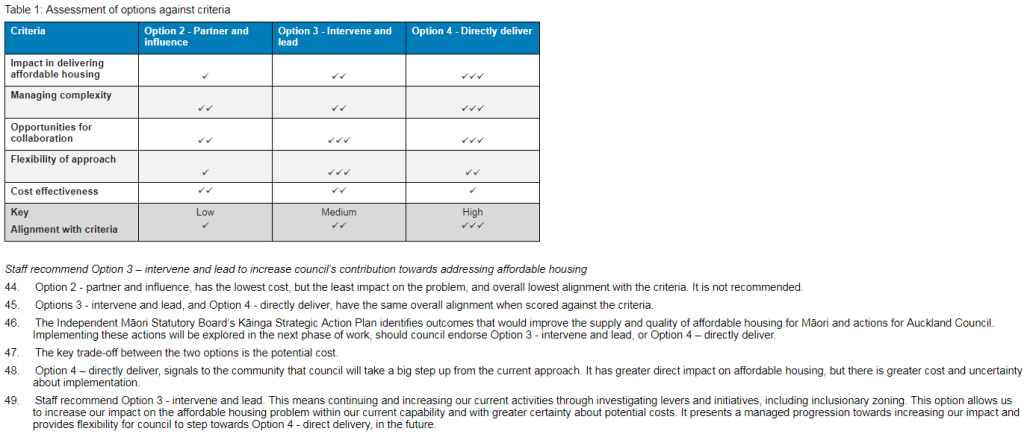 - a) agree that Auckland Council’s preferred position and role in affordable housing is Option 3 – intervene and lead including: