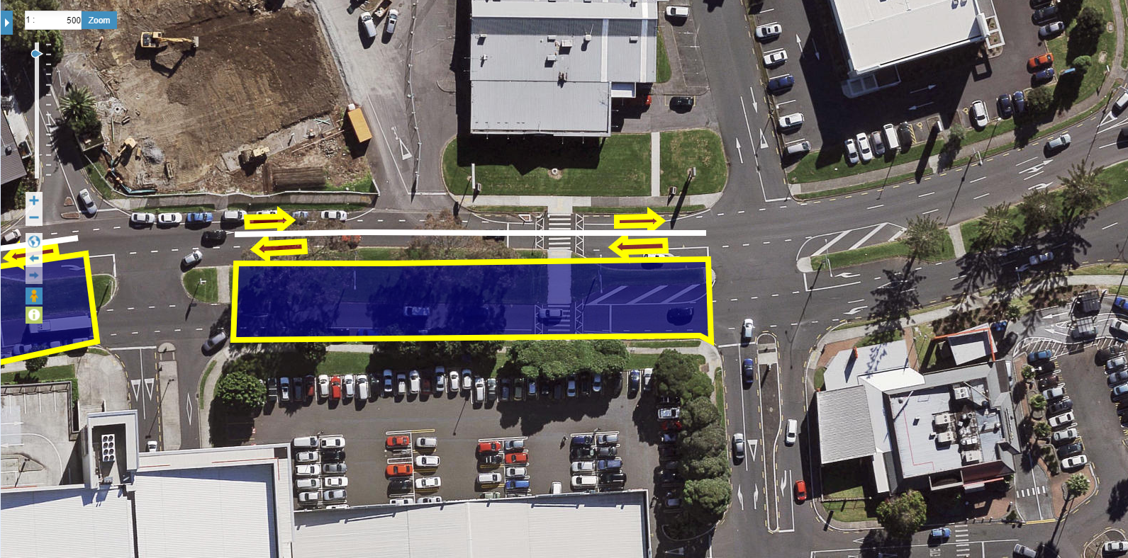 A close up of the Davis Avenue to Osterley Way section of the transit-way. The entrance to the AT parking building will need to be factored into the design!