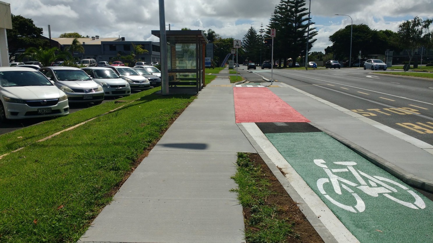BUT and this is why I get so damn well cranky with Auckland Transport it does not mean for AT to go consume up those grass medians and still need land either side of the road because they need to build for every possible car turnout intention at an intersection rather than just do better signal phasing. This over-engineering junk needs to stop. Transit systems are there to replace car trips so why AT continue to add general lanes to every transit program is a bit like loosening one’s belt to deal with obesity…