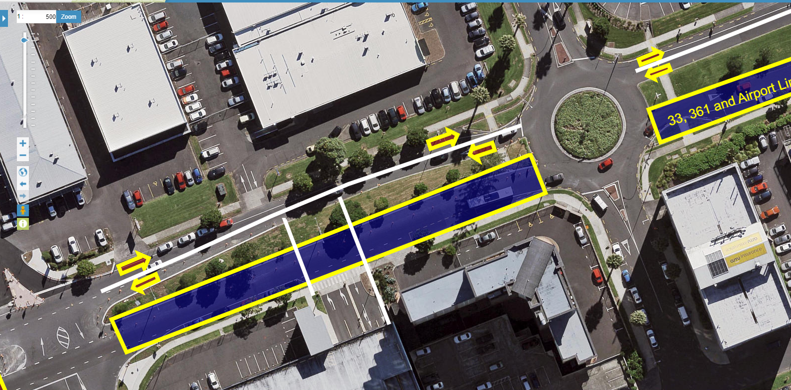 From Davis Avenue to Leyton Way would be the transit-way not only for A2B but also the 33-Great South Road service and the 361 to Otara. Again, Ronwood Avenue is wide enough to cater for general traffic on one side while the entrances to the apartments and AT parking building need to be sorted but easy enough to do! The Ronwood Avenue Station is where Auckland Transport have suggested outside the mall and I have marked as an interchange.