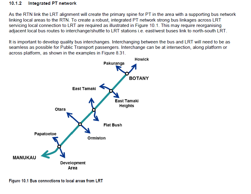 While this was designed for light rail back in 2015, it still works with bus rapid transit. Each one of the stations on Te Irirangi Drive and the Ronwood Avenue station will have local services feeding into and through them. Not only does this along an integrated network but more passengers going through those TOD stations further supporting their residential and commercial bases!