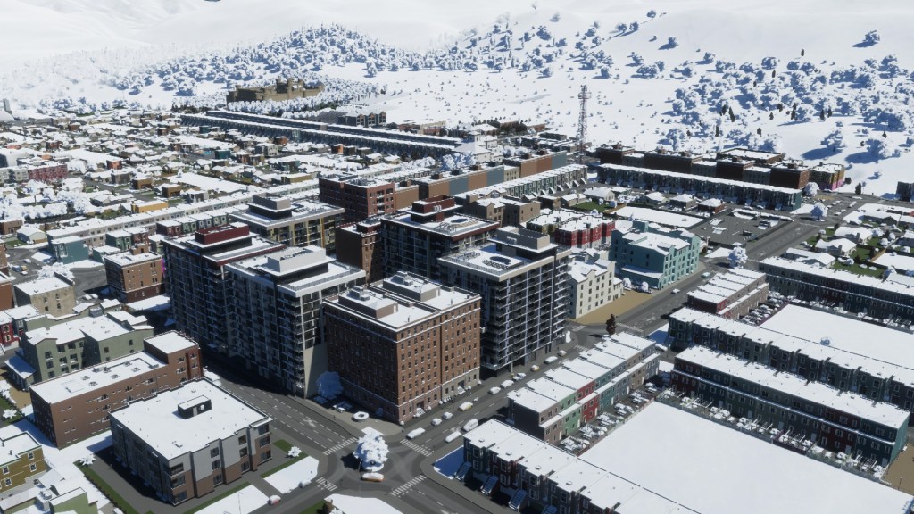 The pictures below also showcasing CS2’s standardised zones, and how the urban form has reacted to it.