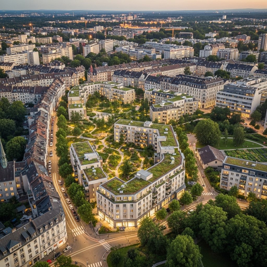 Green courtyards and tree-lined streets: Nature is integrated into the built environment, cooling the city, supporting biodiversity, and improving health and livability.