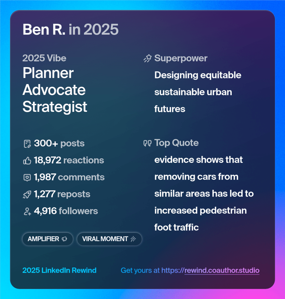 So, how was my 2025 year on LinkedIn? Apparently even busier than 2024 especially in the back quarter of 2025 as the final pieces of the Planning reforms gathered pace. That being the introduction of the Planning Bill, Natural Environment Bill, the Standardised Zones, updated National Direction (which goes live in January 2026) and the introduction of Plan Change 120 in Auckland. But that was not all so it seems. As 2026 approaches ever so fast here’s my 2025 LinkedIn Rewind, by Coauthor.studio: