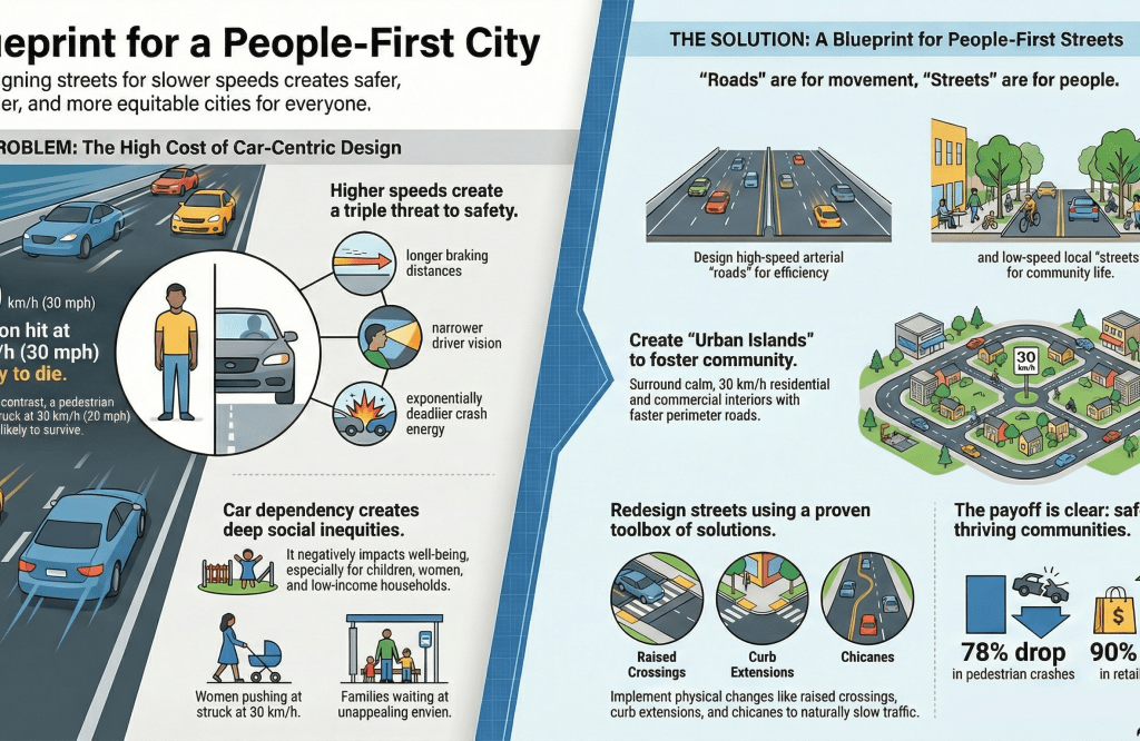 This article unpacks five surprising and counter-intuitive truths about the relationship between street design, speed, and safety. Drawing on insights from the Global Designing Cities Initiative’s “Designing for Safer Speeds” guide, we will explore how the physical shape of our streets directly impacts our health, safety, and quality of life—and how a people-centered approach can reclaim our cities for everyone.