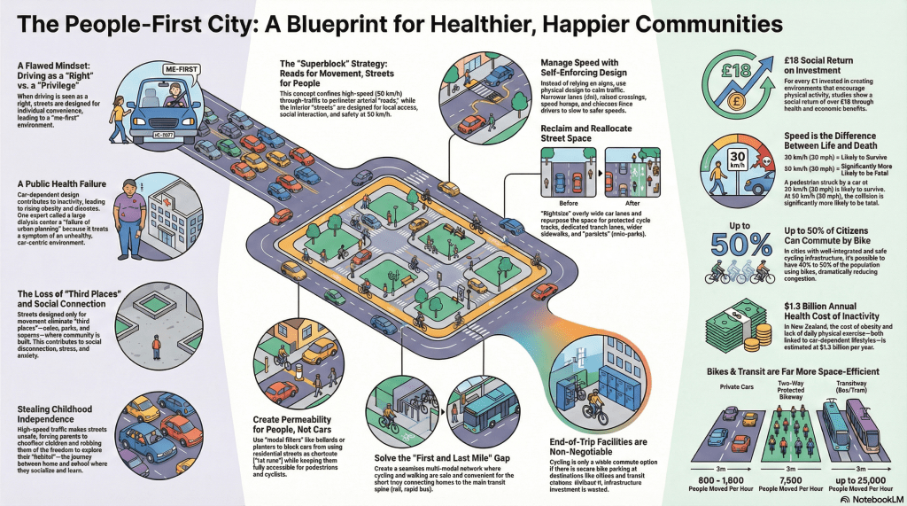 This simple mental shift is the most crucial first step. It redefines the street from a car corridor into a public space for everyone, changing the entire conversation from “how do we move more cars?” to “how do we create a better place for people?” This “me-first” mindset does not just create frustrating traffic; it has profound, and often invisible, consequences for our collective health, which brings us to a startling paradox…