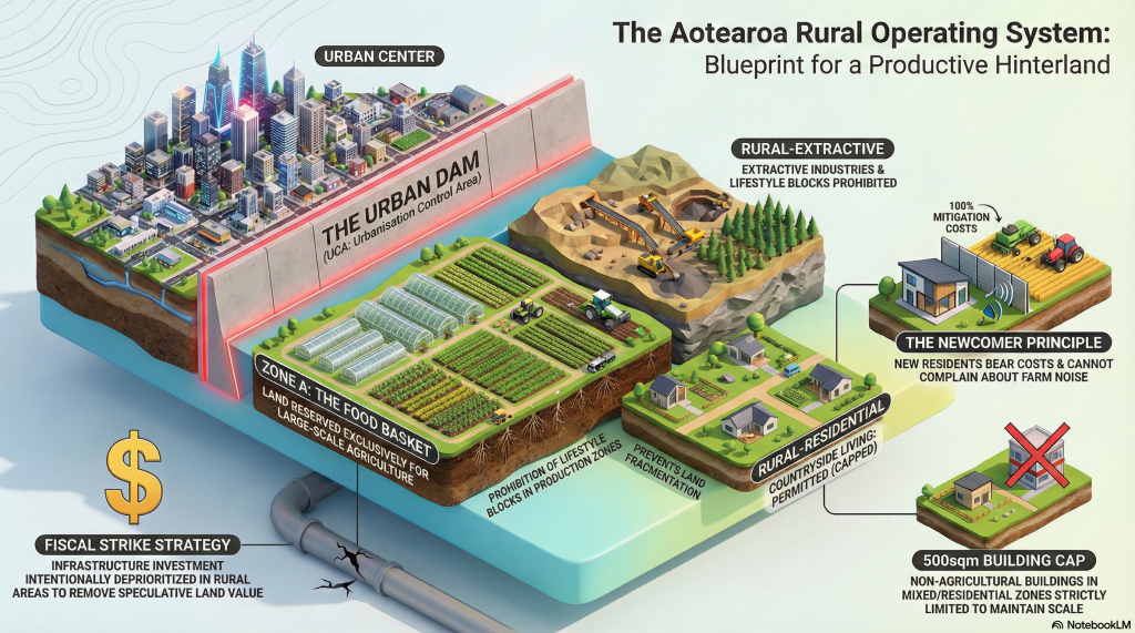 The brilliance here is the fiscal mechanism. By intentionally withholding the “subsidy of sprawl”—refusing to fund municipal sewage or road widening in the UCA—the Bill kills speculative land pricing. Land in the UCA is priced for its actual productivity (farming) rather than its potential for future subdivision. Sprawl is not just “prohibited in principle”; it is rendered economically impossible, protecting the nation’s food basket from the “leak” of unserviced suburbia.